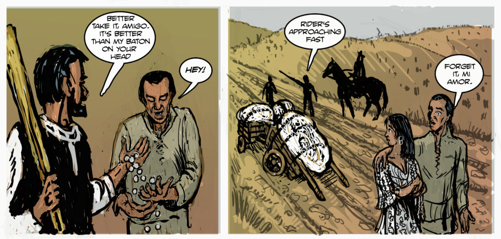 Currently I’m working on my graphic novel El Paso Tales. You can find its most recent stories as well as links to my other graphic novels and artwork on this site. You can read the Cook’s Tale, the Ex-Nun’s Tale, the Knight’s Tale and the beginning of the Two_Spirit’s Tale by clicking the El Paso Tales link below.