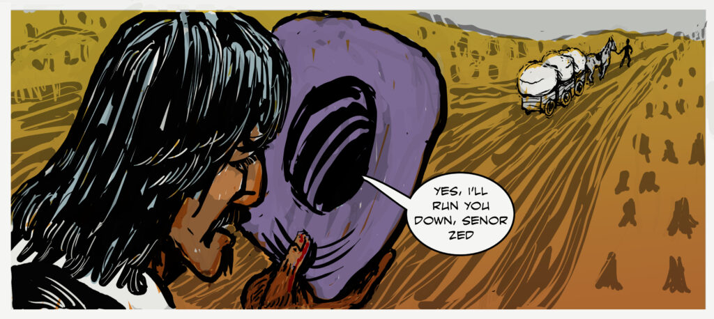 Currently I’m working on my graphic novel El Paso Tales. You can find its most recent stories as well as links to my other graphic novels and artwork on this site. You can read the Cook’s Tale, the Ex-Nun’s Tale, the Knight’s Tale and the most recent pages of the Two-Spirit’s Tale by clicking a link below.